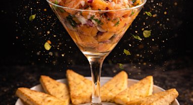 Leve, fresco e cheio de sabor. O **ceviche de salmão do Tropical Beach** é preparado com ingredientes sele…